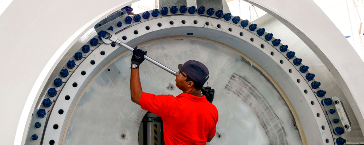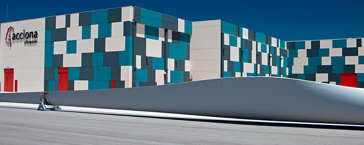 Como un nuevo resultado de la capacidad de innovación de nuestro equipo humano, el 30 de junio de 2010 se inaugura la planta de palas de ACCIONA Blades, que complementa la presencia de la compañía en la cadena de valor éolica y mejora el conocimiento y el control del producto final. Inicialmente construida para palas de 34 y 37,5 m de longitud, ha evolucionado paralelamente a los aerogeneradores AW, y ya está capacitada para fabricar palas de 64,7 m para el aerogenerador AW132/3000, de 132 m de rotor.