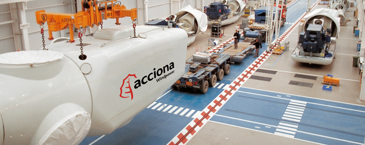 El 6 de mayo de 2003 quedaba inaugurada la planta de ensamblaje de aerogeneradores de Barásoain (Navarra), dimensionada para producir hasta 250 unidades al año de la plataforma de 1.500 kW de potencia, una turbina fiable y robusta, concebida para durar, con base en el conocimiento adquirido por la compañía como operadora, ya para aquellos años, de casi dos mil turbinas eólicas en España.